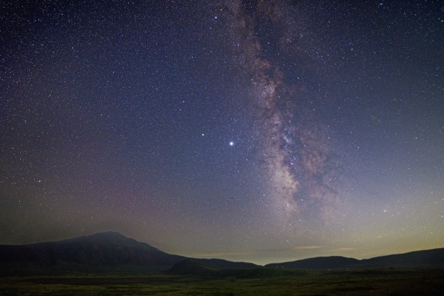 阿蘇くじゅう国立公園内にある久住高原は、標高約1,000mの場所にあり、周囲の景色も合わせて星空を堪能できます。